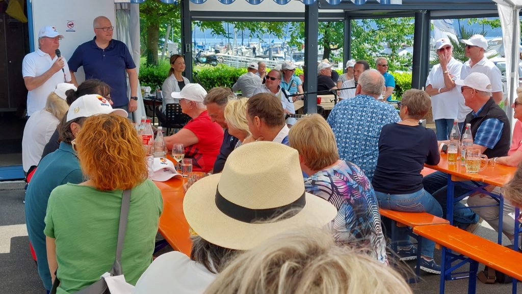Jürgen Schmitz, Ehrenvorsitzender des MYC Radolfzell, gratulierte zum Jubiläum und gab einen kurzen Abriss über 60 Jahre IBMV.