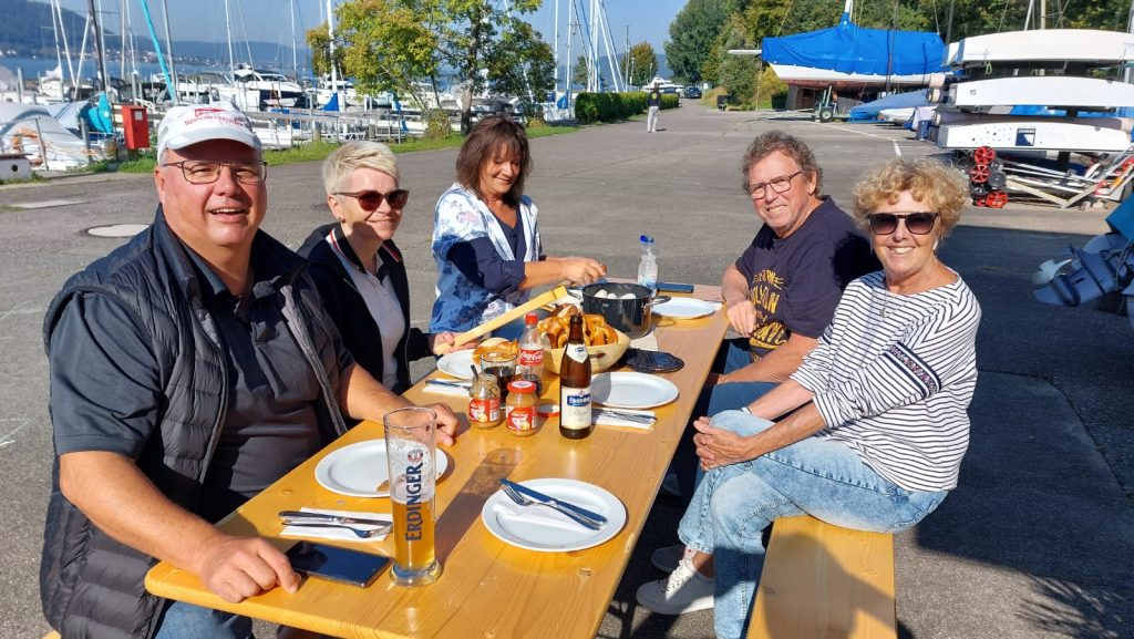 Am Samstagmorgen trafen sich einige Mitglieder zum liebgewonnenen  Weißwurstfrühstück an unserem schönen Freisitz, um das diesjährige Absegeln zu beginnen. Anschließend machten sich die Clubmitglieder mit dem Boot auf zum Segler-Verein Staad.