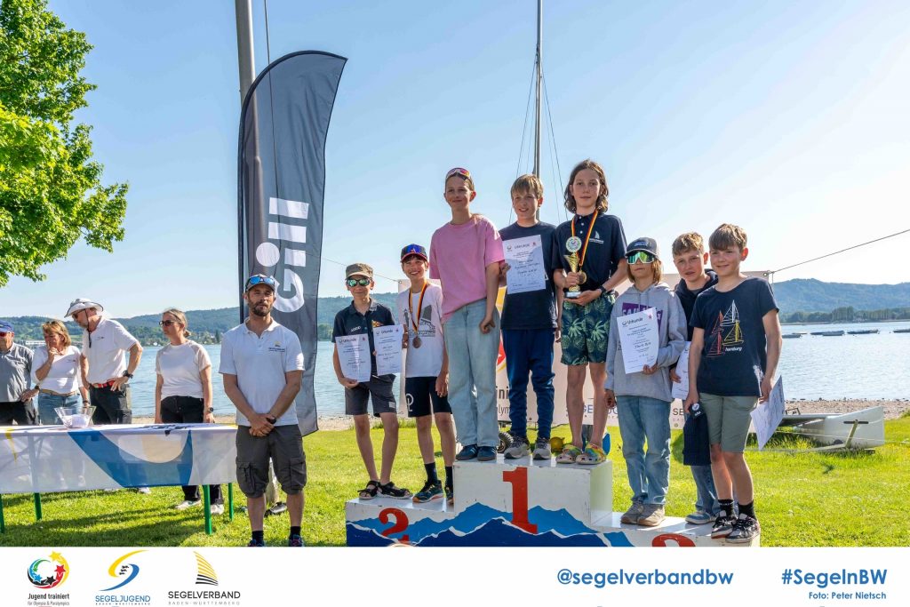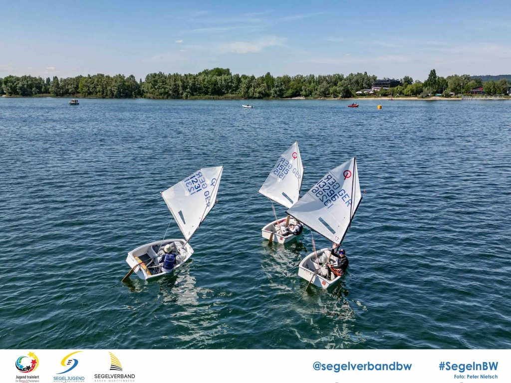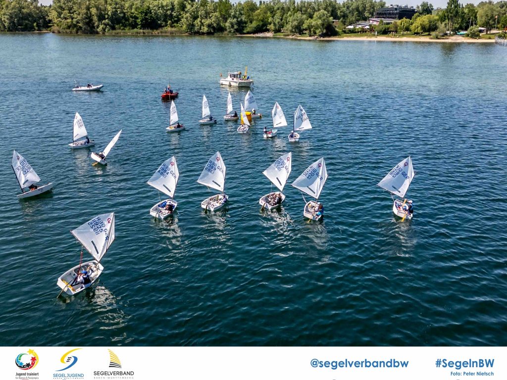 Am Mittwoch, den 14.05.2025 fand das Landesfinale „Jugend trainiert für Olympia & Paralympics“ im Segeln (Bootsklasse „Optimist“) im Yachtclub Radolfzell statt. Bei Sonnenschein und Flaute mit ein paar Böen schafften wir nach der Steuerleutebesprechung um 11:30 Uhr – dank eines guten Wettfahrtleiters – vier Wettfahrten. Bei den Älteren (Wertungsklasse III – Jahrgang 2011-2013) starteten 25 Leute und bei den Jüngeren (Wertungsklasse IV – Jahrgang 2013-2015) waren es 19 Teilnehmende aus insgesamt 25 Schulen in Baden-Württemberg.