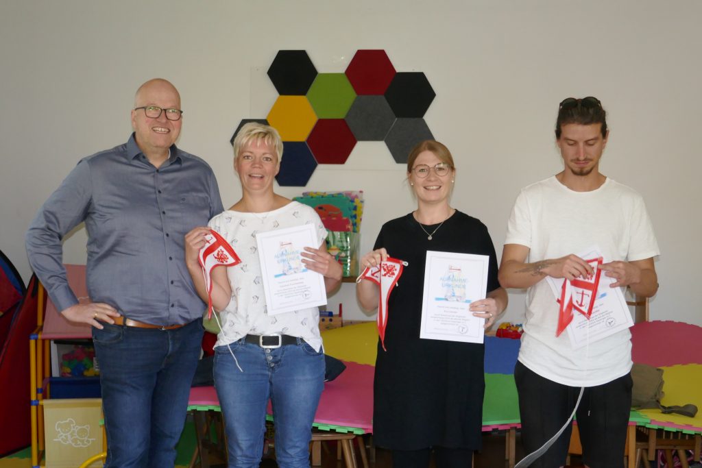 Von links: 1.Vorsitzender Bernd Heinle, die Neumitlieder Caroline Fruchtzweig, Eva Harder und Réne Kandler.